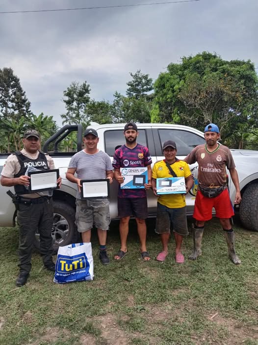 El presidente Junior Carrera Cedeño realizó la entrega de reflectores que se utilizarán para la iluminación de cancha en el Recinto Cerró de Oro sector los Quintanas