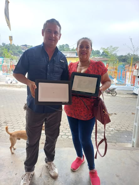 El presidente Junior Carrera Cedeño realizó la entrega de reflectores que se utilizarán para la iluminación de cancha en el sector La Saiba.