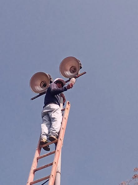 Las iluminarías que se encontraban en mal estado fueron restauradas,se realizó el cambio de bombillos y demás accesorios; así mismo se hizo la donación de un nuevo reflector.