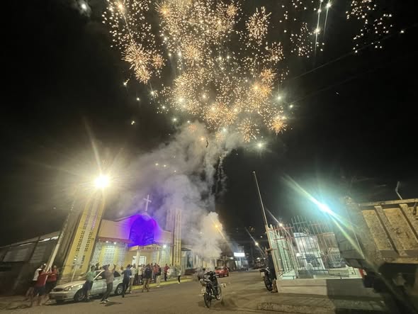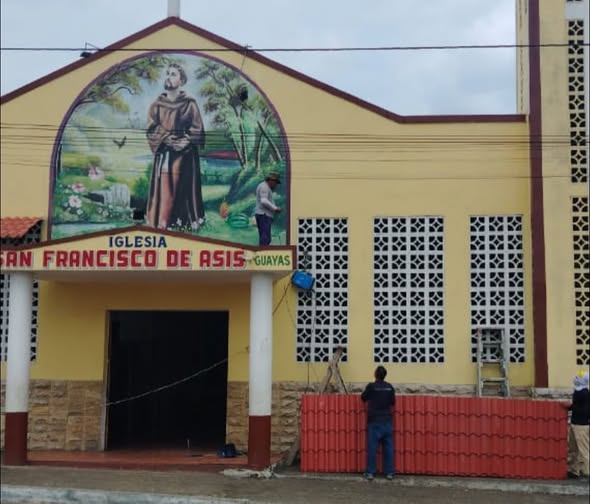 En vísperas de fiestas de nuestro patrono se realizó la colocación de viseras y luces reflectivas de colores en la parte interna y externa de la Iglesia
